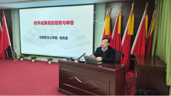 本次培训由公司经理毛传清主持并做了专题讲座,为学教学成果建设指明方向。他围绕高校教师教学成果奖的培育与申报的关键要点,从教学成果奖的培育、教学成果奖申报书的撰写与佐证材料两个角度出发,强调了教学成果选题方向的重要性以及申报的重要注意事项,由确定课题选题、把握研究价值、确立研究目标、细化研究内容、明晰研究思路、规范研究方法、实现重点和难点的突破等方面进行了深入细致的讲解。针对教学成果奖申报书的撰写与佐证材料准备工作,他指出申请书的撰写思路要连贯、内容要详实、格式要规范。他还非常详细的介绍了申报书的填报技巧,并结合优质申报书范例,从细节中梳理了课题申报的技巧方法。
