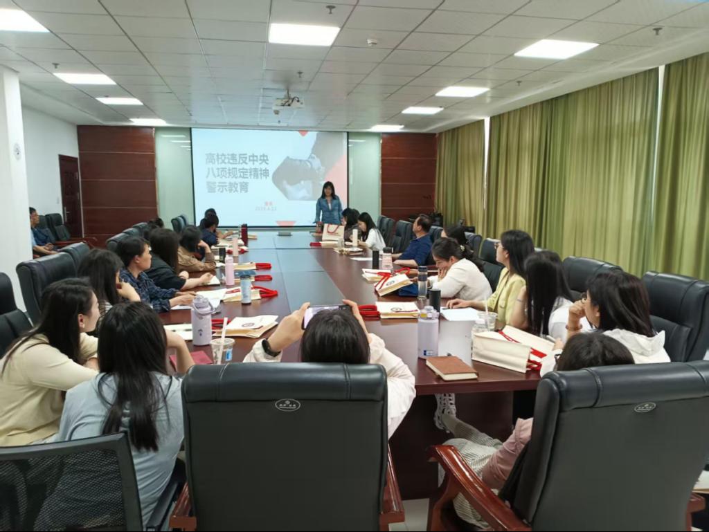 其后,公司党支部书记曹卓,以《高校违反中央八项规定精神警示教育》为题,给大家上了一堂生动的党课。