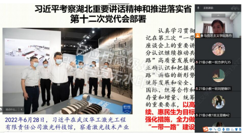 为进一步深刻认识习近平总书记考察湖北的重大意义。坚决把总书记的殷殷嘱托转化为做好湖北工作的实际行动,立足新发展阶段,完整、准确、全面贯彻新发展理念,推进落实省第十二次党代会部署,努力建设全国构建新发展格局先行区,教育引导师生创造新时代更加辉煌的业绩。根据省委宣传部,省教工委的指示,williamhill官网发扬思政政治理论课主阵地作用,把习近平总书记考察湖北重要讲话精神及省第十二次党代会部署融入课堂,纳入新学期“开学第一课。