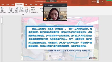 williamhill官网贺志瑞老师在《形势与政策》课堂《高效统筹疫情防控和经济社会发展》中,将习近平主席疫情之后两次考察湖北重要讲话精神灵活运用在课堂,“疫情是一次危机,一次大考,是一场人民战争”,“针尖大的窟窿能漏过斗大的风”,“摆在湖北面前的紧要任务,就是权利做好统筹疫情防控和经济社会发展工作”,“‘集体免疫’、‘躺平’之类的防控政策是不可取的”等等,总书记殷殷嘱托,指示我们要打好疫情防控战,直至最后的胜利。让同学们深刻认识到目前中国的疫情防控措施是符合中国国情的,是科学有效的,我们的经济社会发展趋势是稳中向好,从而坚定我们夺取疫情防控和经济社会发展双胜利的信心。