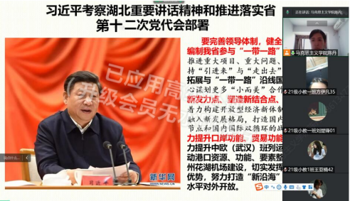 williamhill官网陈丹老师在《形势与政策》课堂《一带一路——从总体布局到走深走实》中,将习近平总书记对湖北工作的重要指示融入课堂,湖北要站在党和国家事业发展全局的高度谋划湖北发展,找准湖北发展的定位,抢抓构建新发展格局、“一带一路”等重要机遇,稳住经济基本盘。湖北从长江走向世界,“一带一路”上的“湖北身影”愈来愈挺拔。武汉至欧洲的国际班列累计开通16条线路,辐射34个国家、70多个城市,实载率达97.7%,居全国各中欧班列线路之首。铁、水、空立体双向大通道,助力武汉奔向全球货物分拨中心。构建大通关,5个国家级口岸、3个综合保税区、5个保税物流中心(B型)、15个特殊商品进境指定监管场地,搭建一张水、陆、空立体开放的口岸体系网,货物流通更加高效便捷;